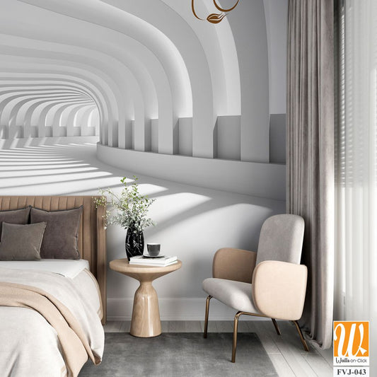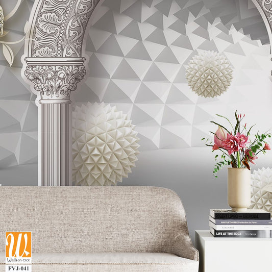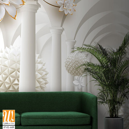 3D wallpaper of white arches with golden flowers [WP-FVE-449]