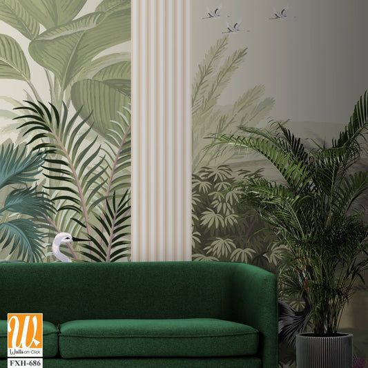 Ancient Greek Garden Wallpaper. Greek Forest Landscape Wall Mural. Greek jungle illustrations. [WP-FXH-686]
