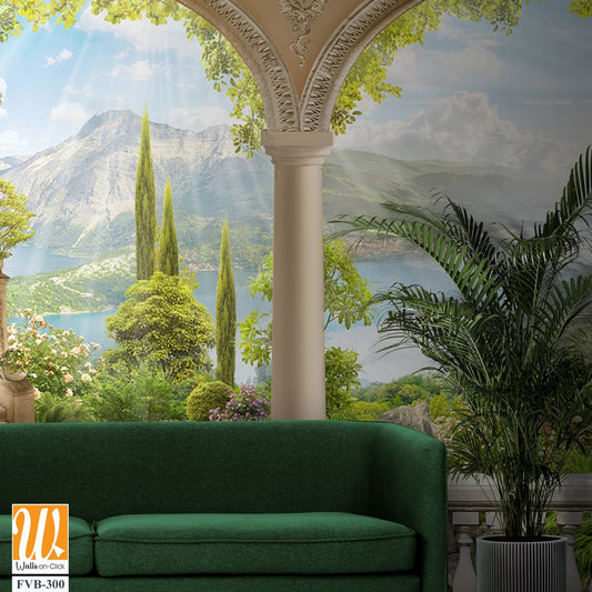 Mural of an Italian villa balcony with arches [WP-FVB-300]