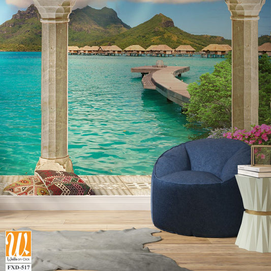 Mural depicting an exotic island with lush greenery Wallpaper [WP-FXD-517]
