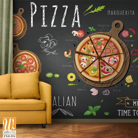 Design of an Italian pizza items with a chalkboard background Wallpaper [WP-FXD-554]