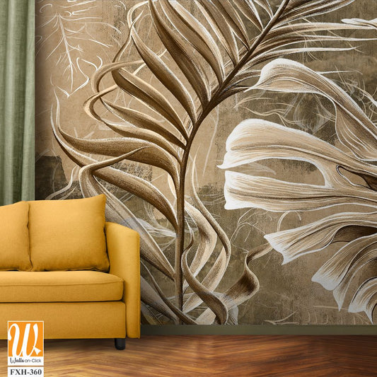 Abstract palm leaves in white and gray tones Wallpaper [WP-FVC-225]