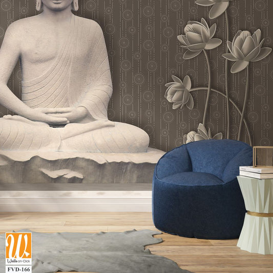 3D wallpaper featuring a grey and white stone Buddha [WP-FVD-166]