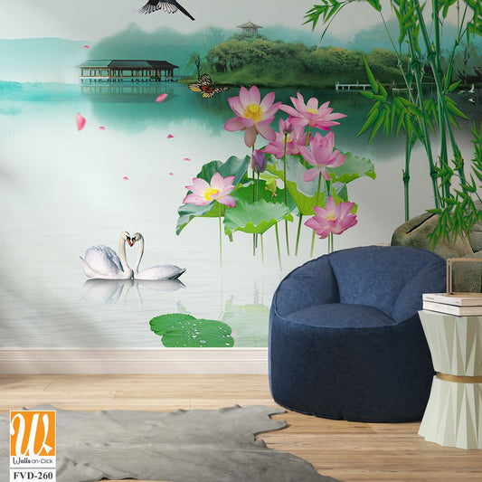 3D wallpaper of a green bamboo forest lake [WP-FVD-260]