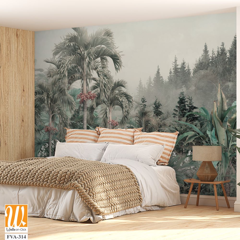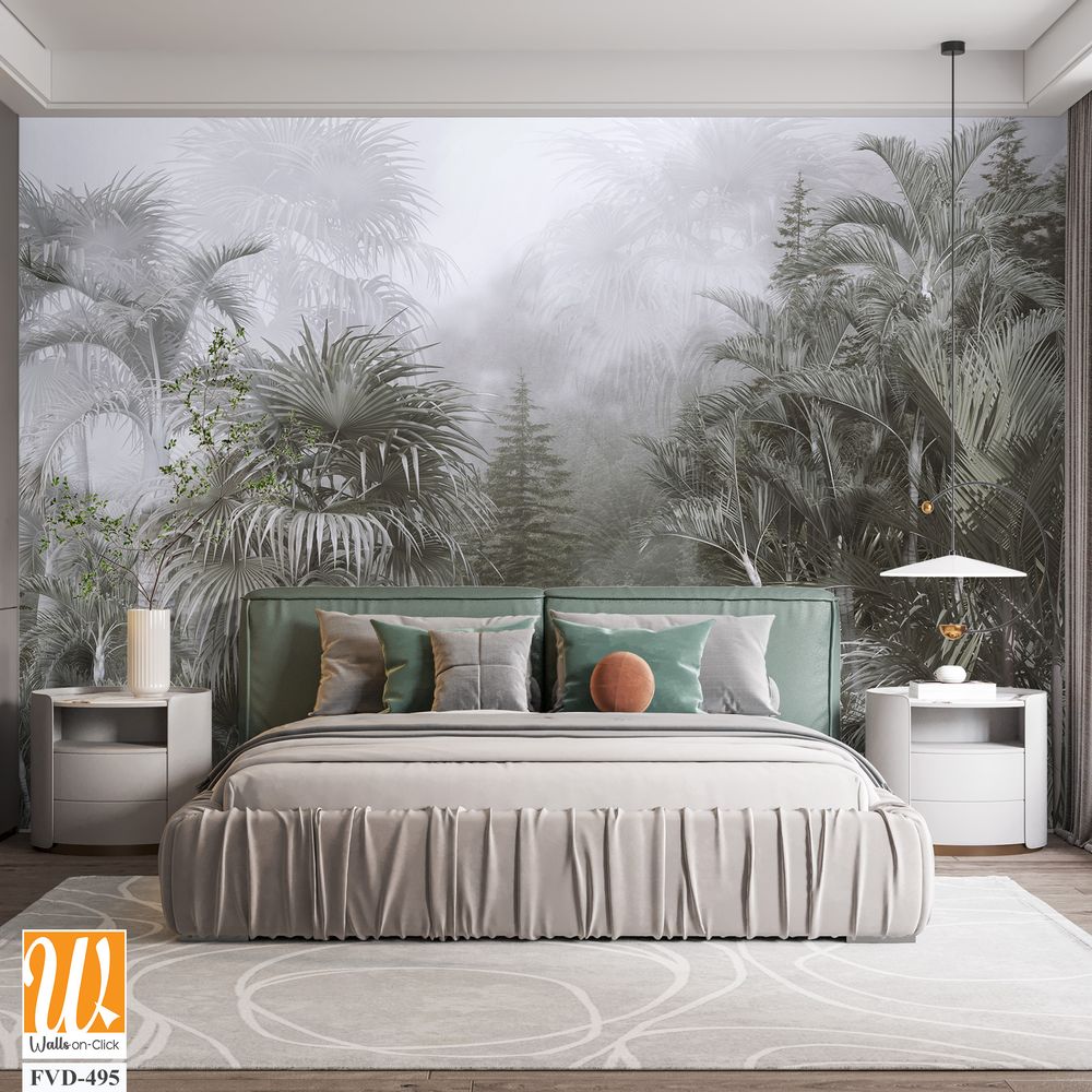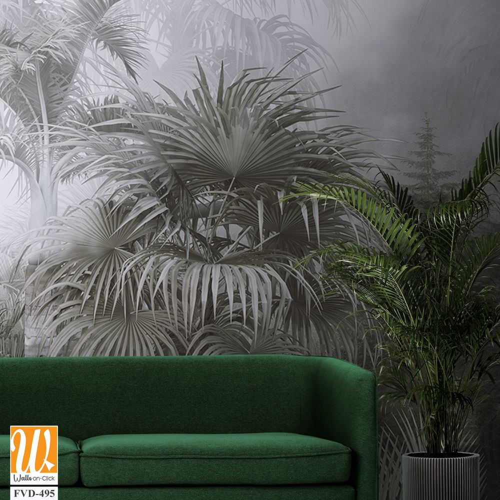 A foggy jungle with palm trees, monochrome [WP-FVD-495]