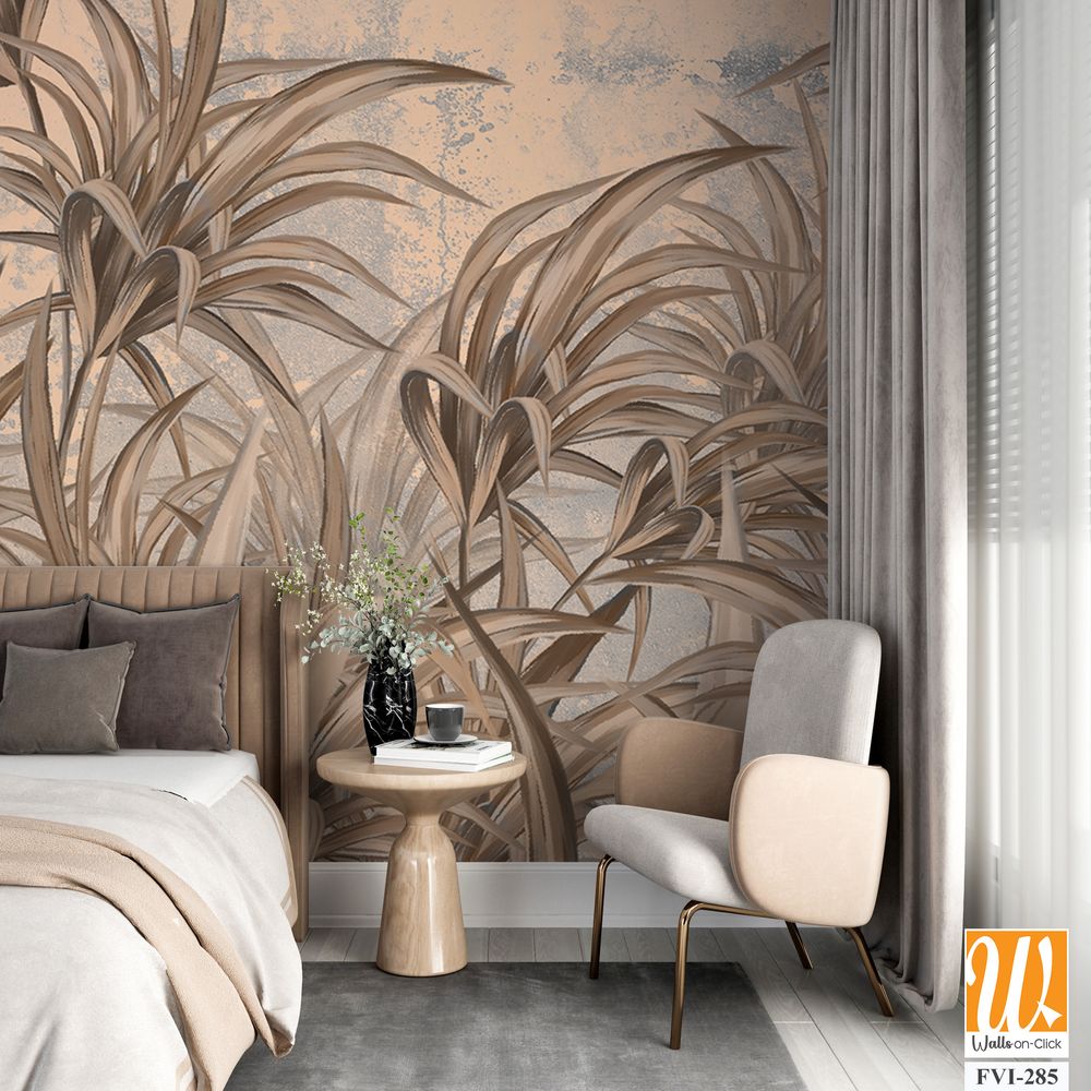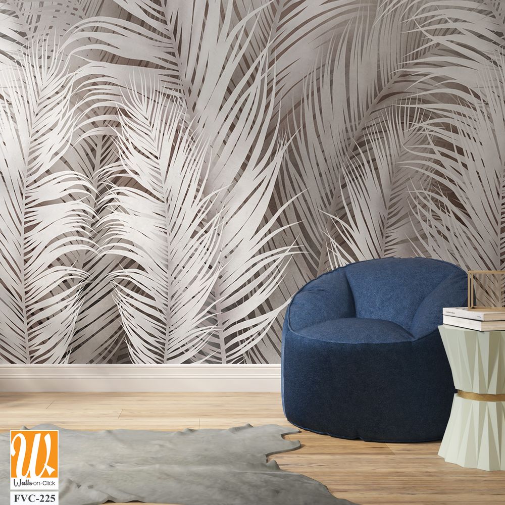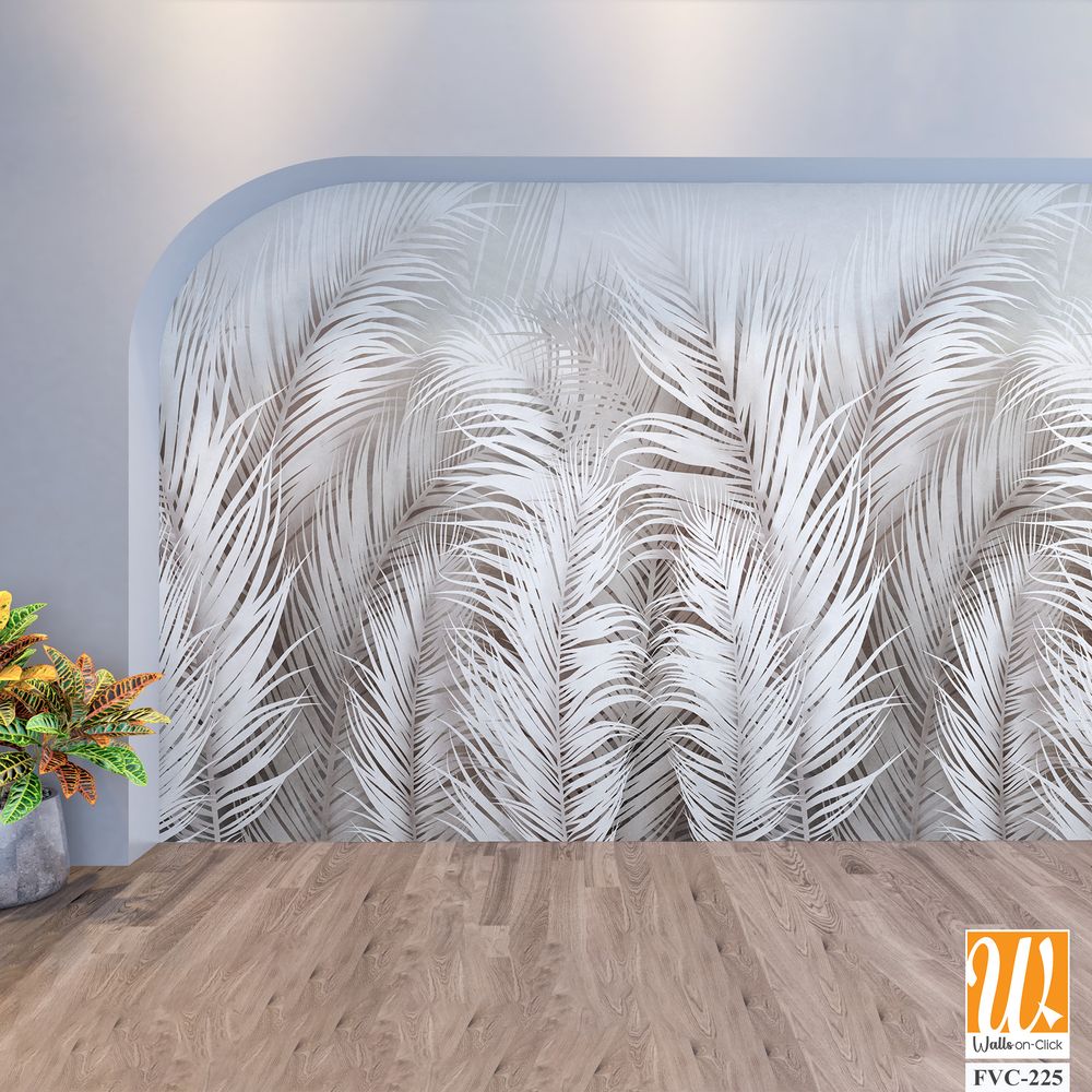 Abstract palm leaves in white and gray tones Wallpaper [WP-FVC-225]